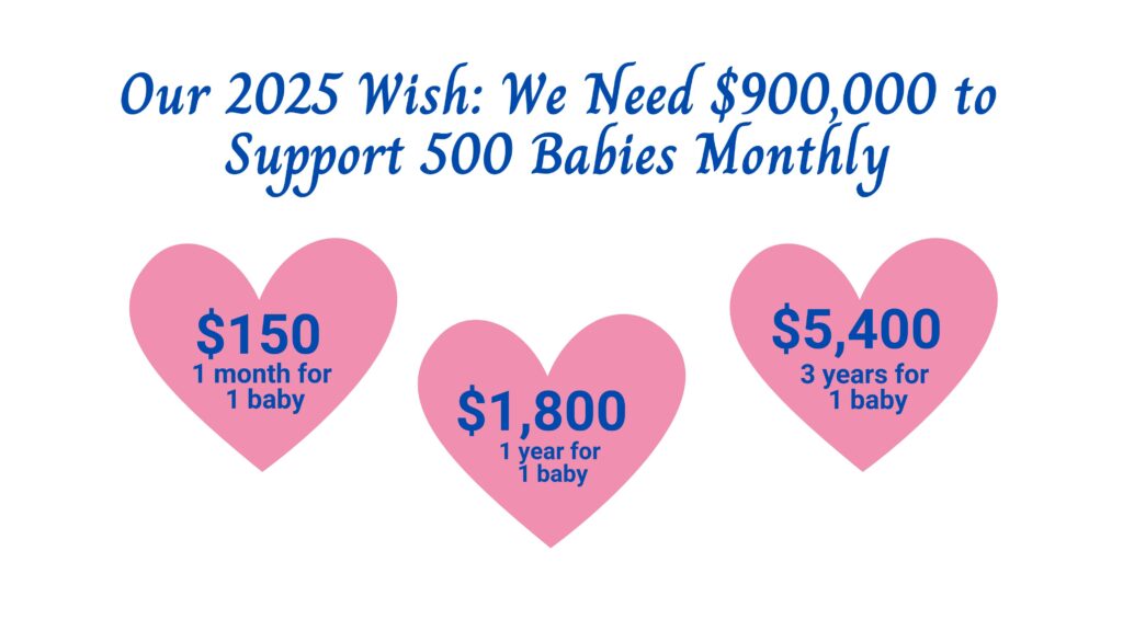 Share your blessings to fund milk and diaper supplies for our beneficiaries.